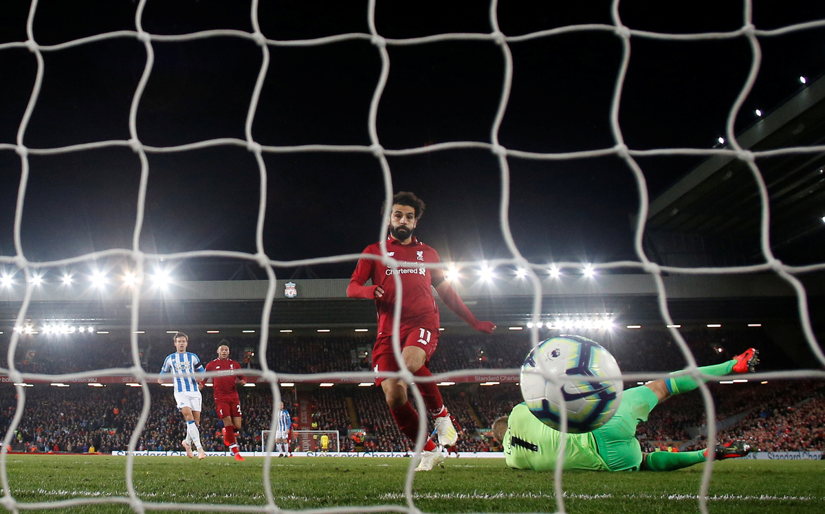 On the stroke of halftime, Salah put the game beyond Huddersfield when he latched on to a long pass forward from Trent Alexander-Arnold and knocked the ball past the advancing Jonas Lossl.