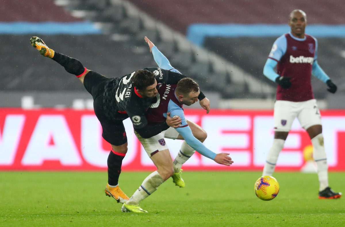 Juergen Klopp's side have 40 points from 21 games, four behind leaders Manchester City who they host next weekend. West Ham's first league defeat in seven leaves them on 35 points.