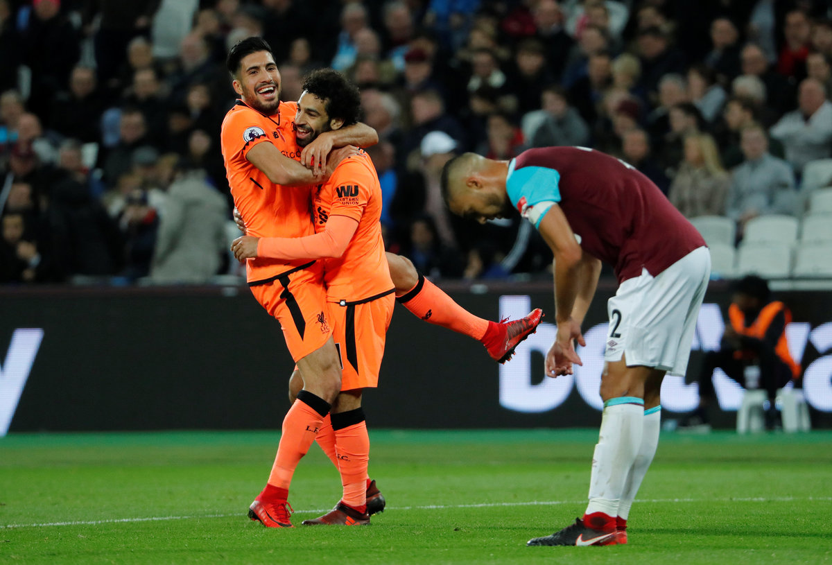 Liverpool's Egyptian forward Mohamed Salah maintained his rich goalscoring form by netting twice as Juergen Klopp's side punished a woeful West Ham display to move sixth, level on 19 points with Chelsea who host Manchester United on Sunday, and Arsenal.