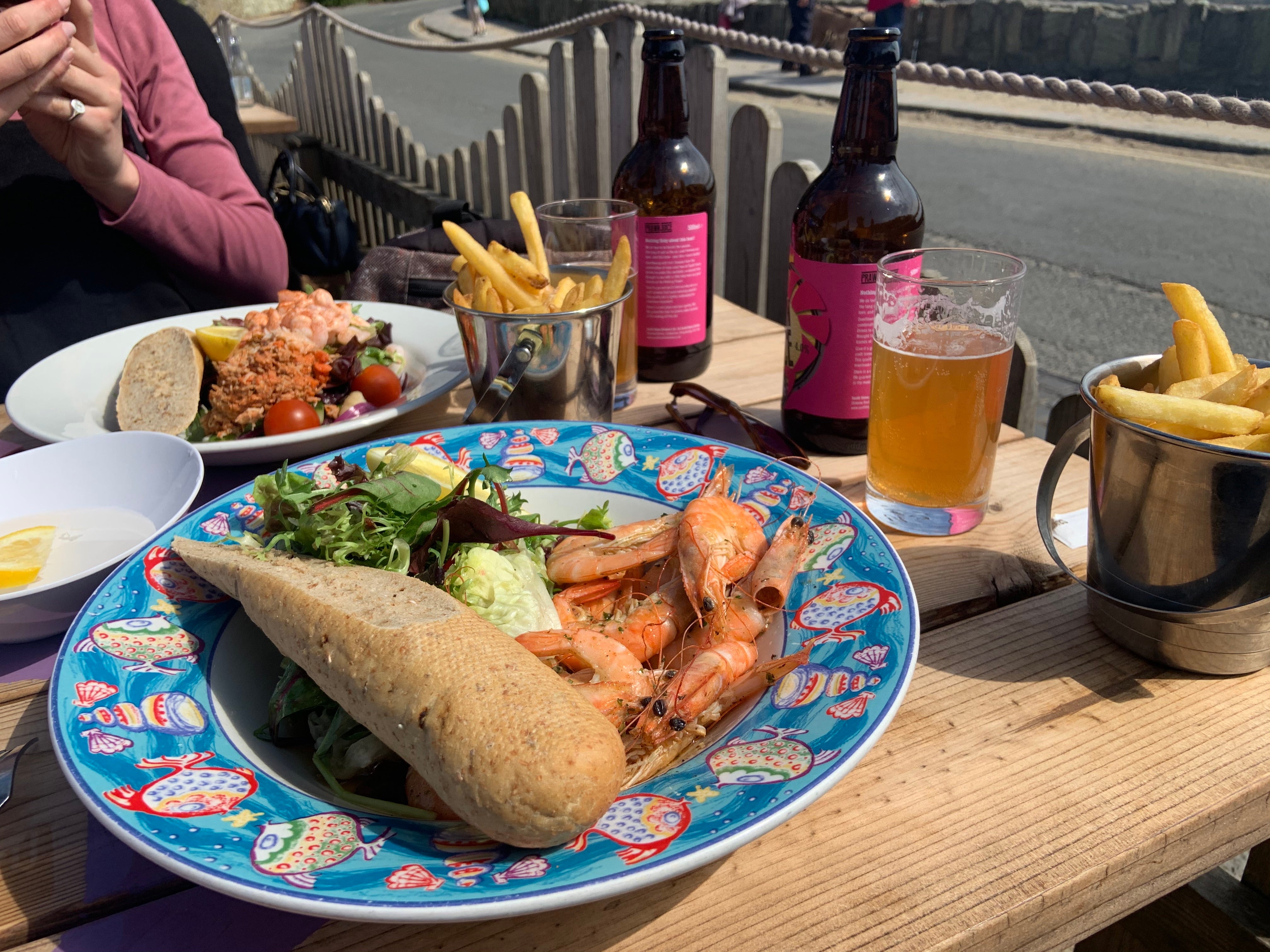The route continues east and I refuel at The Winking Prawn (winkingprawngroup.co.uk/winking-prawn; seafood mains from approx £10), a family-run seafood restaurant on Salcombe North Sands beach. Beer fans should order the aptly named Prawn Juice, which is brewed in partnership with the South Hams Brewery.