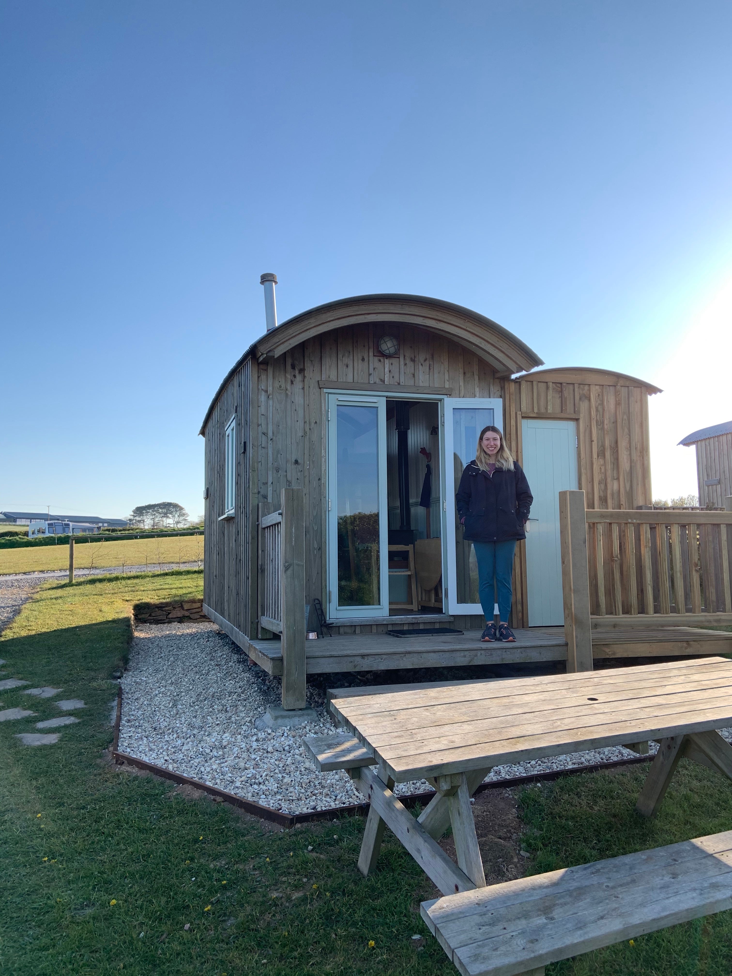 I’m in the Foxes Den which has an en-suite toilet (new for 2021), a comfy double bed (though it’s up a ladder so book either The Potting Shed or The Shippen if that’s a problem), and a small leather couch. I enjoy my morning coffee at the picnic table with its views of the Kingsbridge Estuary and flocks of sheep merrily grazing in the surrounding fields.