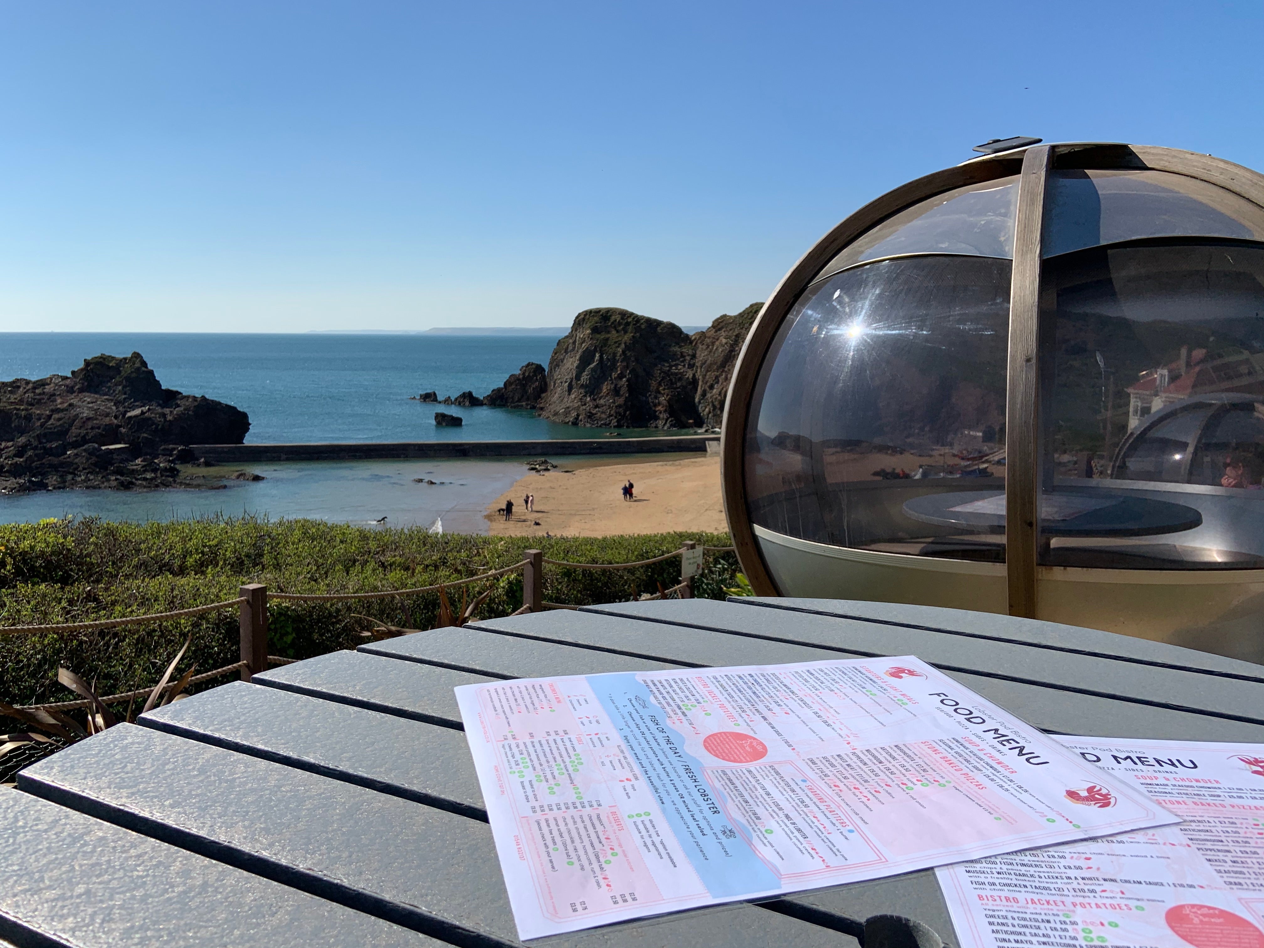 Visitors can sit on outdoor benches or self-contained pods (which seat up to 10 people) and all have views of the ocean and the grassy Bolt Tail headland (a 15-minute amble along the coastal path will take you up to the headland viewpoint). I spend the next hour marvelling over the view. The sun has made an appearance and I’m lapping it up with a pint of Salcombe Pale Ale (brewed just up the road in Kingsbridge).