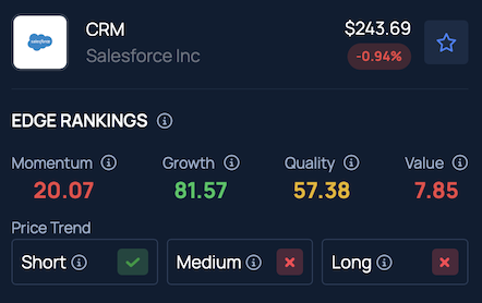 According to Benzinga's Edge Stock Rankings, Salesforce scores in the 81st percentile for Growth. Click here to see how it stacks up against key competitors.