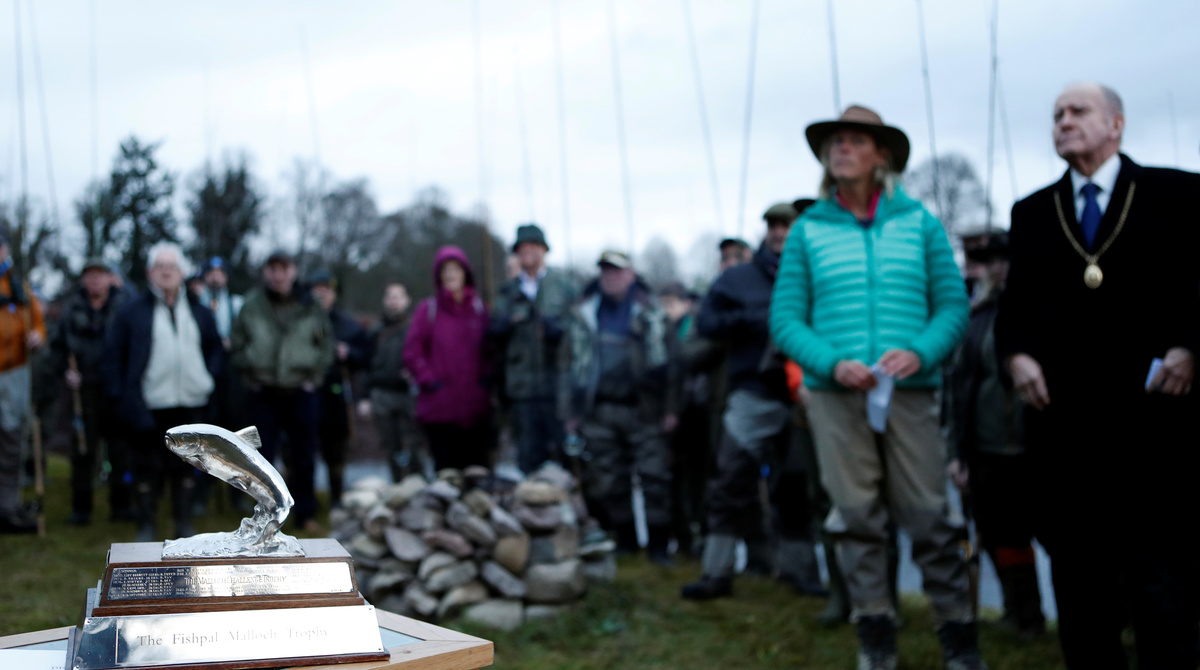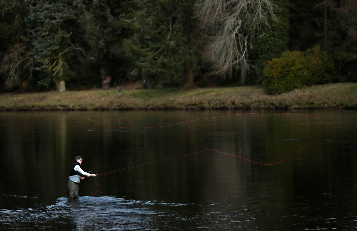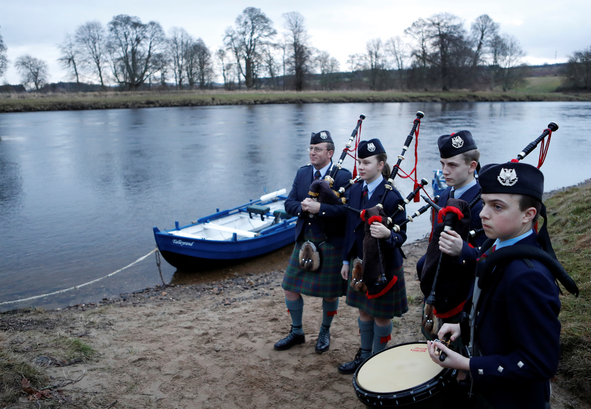Polly Murray makes the first cast on the opening day of the salmon fishing season on the river Tay near Meikleour, Scotland, Britain January 15, 2019. REUTERS/Russell CheynePerth And District Junior Pipe Band wait to play on the bank on the opening day of the salmon fishing season on the river Tay near Meikleour, Scotland, Britain January 15, 2019. REUTERS/Russell CheyneA fisherman stands in the river on the opening day of the salmon fishing season on the river Tay near Meikleour, Scotland, Britain January 15, 2019. REUTERS/Russell CheyneA fisherwoman blows a horn to assemble fishers on the opening day of the salmon fishing season on the river Tay near Meikleour, Scotland, Britain January 15, 2019. REUTERS/Russell CheyneCouncillor Willie Wilson blesses the river with whisky on the opening day of the salmon fishing season on the river Tay near Meikleour, Scotland, Britain January 15, 2019. REUTERS/Russell CheyneA fisherman stands in the river on the opening day of the salmon fishing season on the river Tay near Meikleour, Scotland, Britain January 15, 2019. REUTERS/Russell CheyneFshermen stand in the river on the opening day of the salmon fishing season on the river Tay near Meikleour, Scotland, Britain January 15, 2019. REUTERS/Russell CheyneFishers walk along the bank on the opening day of the salmon fishing season on the river Tay near Meikleour, Scotland, Britain January 15, 2019. REUTERS/Russell CheyneA fisherman drinks whisky on the opening day of the salmon fishing season on the river Tay near Meikleour, Scotland, Britain January 15, 2019. REUTERS/Russell CheyneA fisherwoman stands on the bank on the opening day of the salmon fishing season on the river Tay near Meikleour, Scotland, Britain January 15, 2019. REUTERS/Russell CheyneA fisherwoman gestures on the opening day of the salmon fishing season on the river Tay near Meikleour, Scotland, Britain January 15, 2019. REUTERS/Russell CheyneFishers assemble on the bank on the opening day of the salmon fishing season on the river Tay near Meikleour, Scotland, Britain January 15, 2019. REUTERS/Russell CheyneA fsherman casts from the bank on the opening day of the salmon fishing season on the river Tay near Meikleour, Scotland, Britain January 15, 2019. REUTERS/Russell CheyneA fisherman stands in the river on the opening day of the salmon fishing season on the river Tay near Meikleour, Scotland, Britain January 15, 2019. REUTERS/Russell Cheyne
