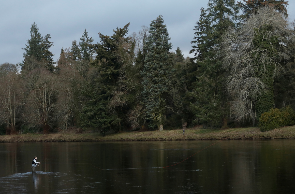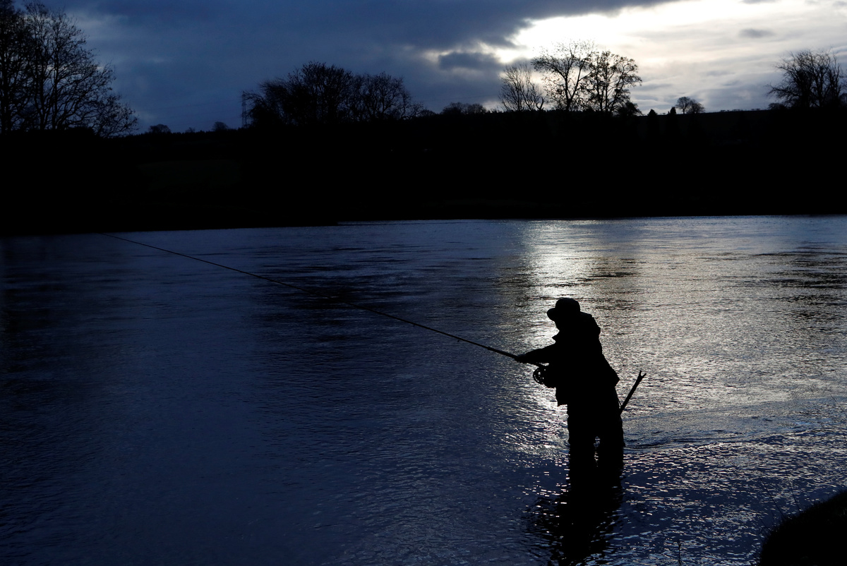 A fisher casts from the river on the opening day of the salmon fishing season on the river Tay near Meikleour, Scotland, Britain January 15, 2019. REUTERS/Russell Cheyne