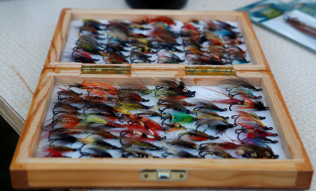 A box of flies sits on a table on the opening day of the salmon fishing season on the river Tay near Meikleour, Scotland, Britain January 15, 2019. REUTERS/Russell Cheyne