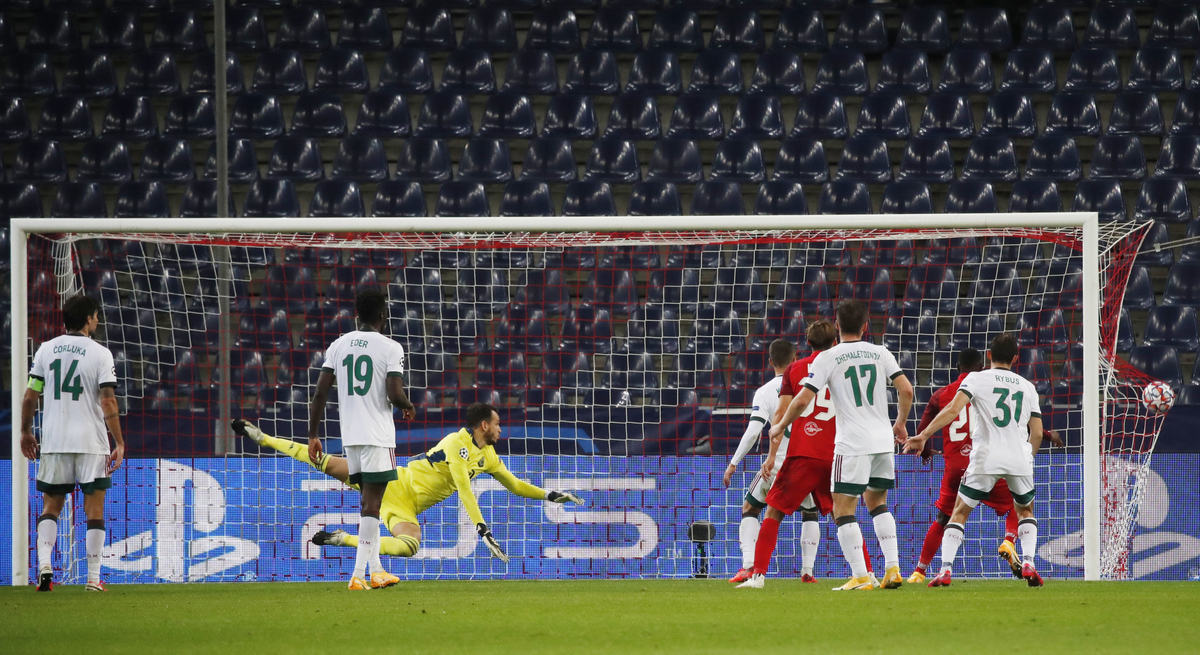 Sekou Koita hit the post for Salzburg but they were caught after losing possession on the edge of their own area and Lisakovich levelled with a 75th minute header which bounced between goalkeeper Cican Stankovic and his near post.