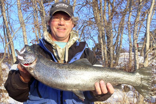 Most of the action occurs near the French River. In late winter, Kamloops rainbows begin staging near shore before entering the river. These rainbows don't spawn as successfully in the wild as wild steelhead, so biologists with the Minnesota Department of Natural Resources take spawn from the fish when they enter the French River and rear the young rainbows for about a year in hatcheries.