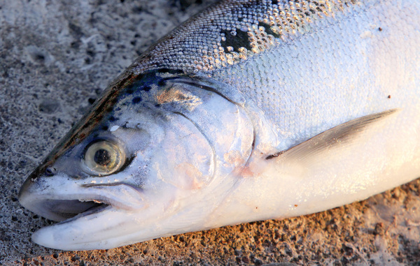 Already, though, he had scored. A silvery coho lay on a bare rock behind him.