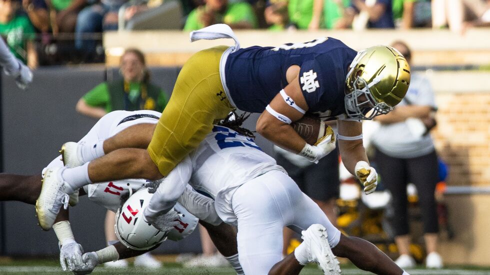 SOUTH BEND, Ind. — Sam Hartman passed for 194 yards and two touchdowns and Notre Dame’s defense didn’t allow a touchdown for a second straight game as the No. 13 Irish beat Tennessee State 56-3 on Saturday.