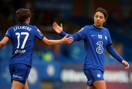 The Australia international opened the scoring for the Blues in the 24th minute, getting above her defender to head a looping Fran Kirby cross from the left against the right-hand post and into the net.