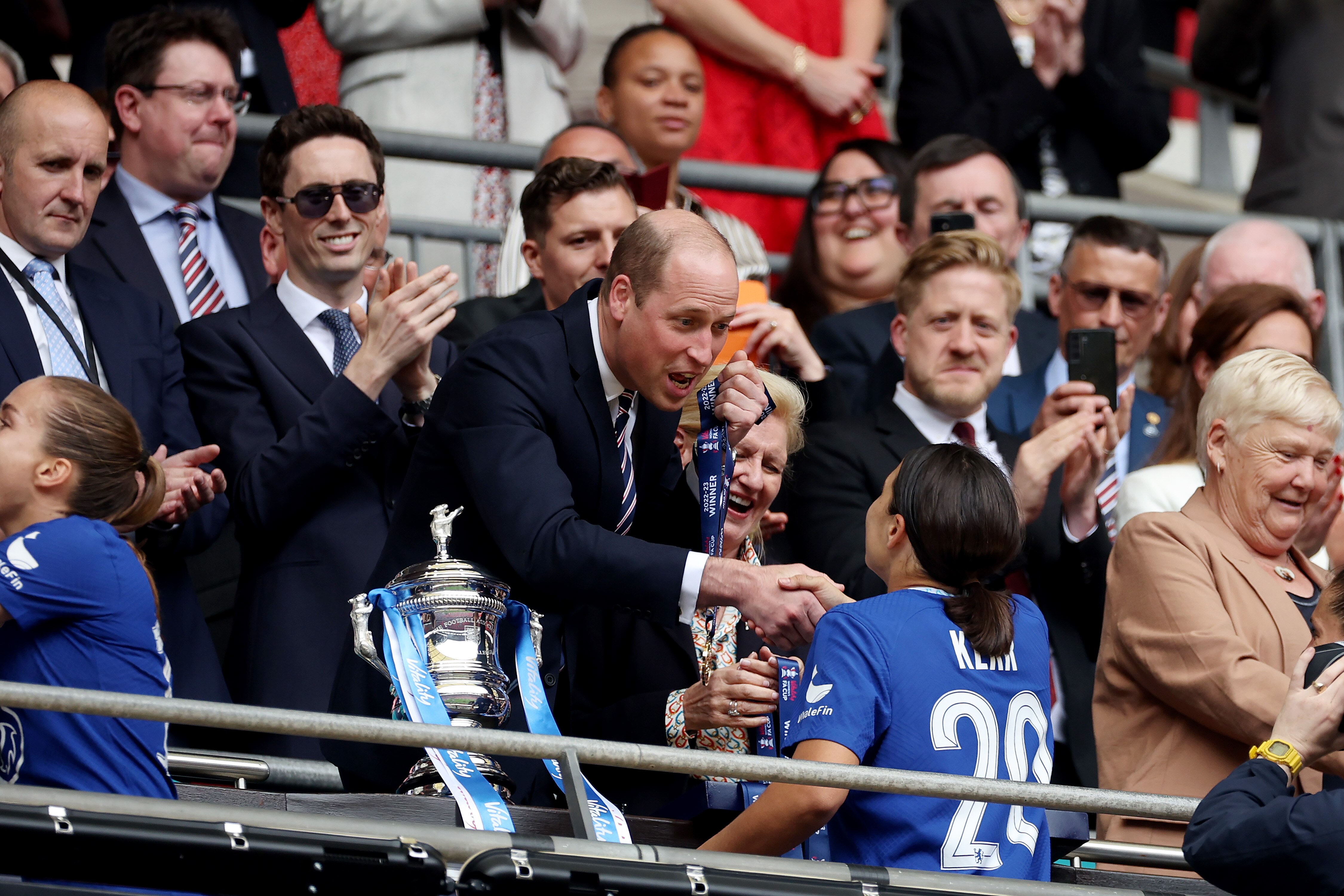 A week after being Australia's flag-bearer at the coronation of King Charles III, Kerr had another brush with royalty as Prince William presented the Blues with their champions' medals in London.