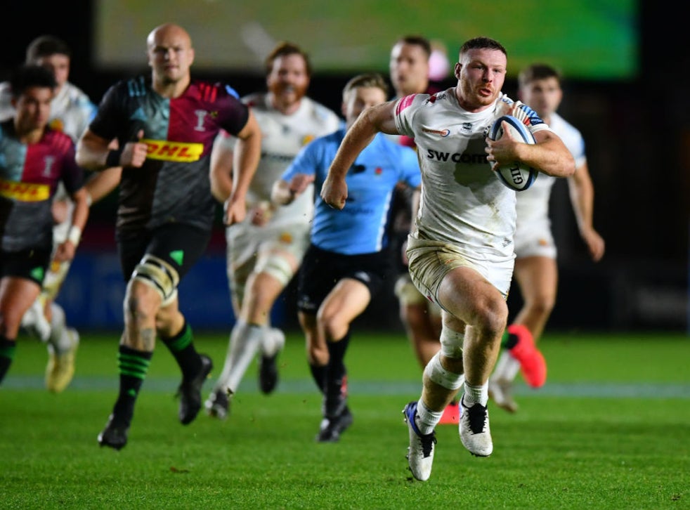 It did not take long after the restart for the lead to grow, with Ewers scoring a more conventional Exeter try. With a penalty sent to touch just short of the Harlequins five-metre line, the home side’s maul defence went missing to allow Ewers to take the lineout and charge through without facing any real resistance.
