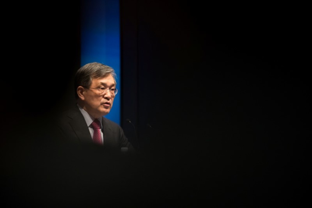 Kwon Oh-hyun, chairman of Technology Research at Samsung Electronics Co., speaks during the company's annual general meeting at the company's Seocho office building in Seoul, South Korea, March 23, 2018. SeongJoon Cho/Pool via Reuters