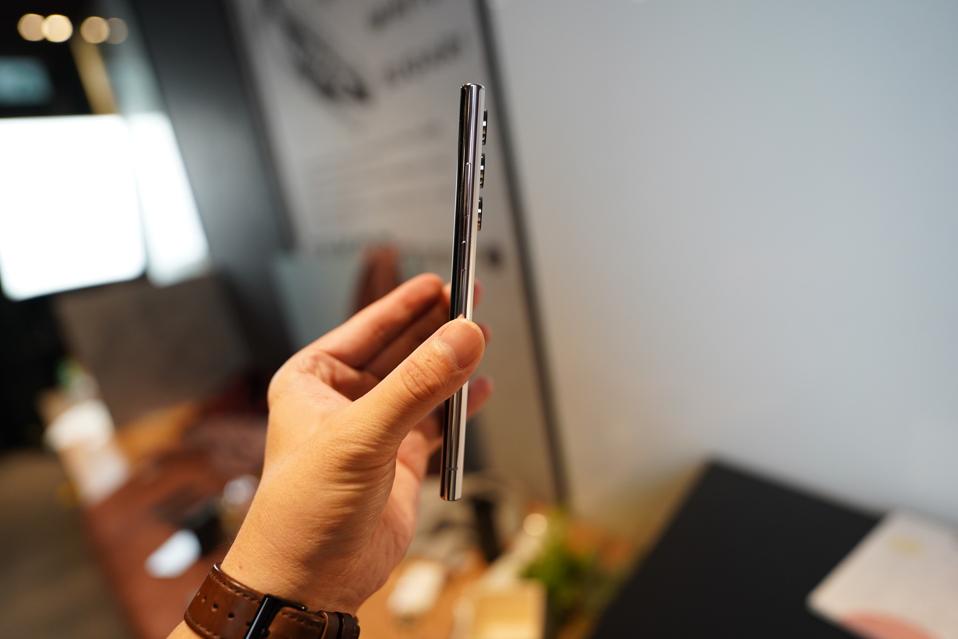 I like this look—the Galaxy S22 Ultra, like previous Note phones, look more like a businessman's work machine rather than a TikTok/selfie device—but I don't like the in-hand feel. The hard corners look cool, and gives the screen just a wee bit more room than a conventional phone, but they consistently dig into my palm. The S22 Ultra is not uncomfortable to hold per se, but it is certainly less comfortable to hold than last year's Galaxy S21 Ultra, or a curvy Xiaomi flagship.