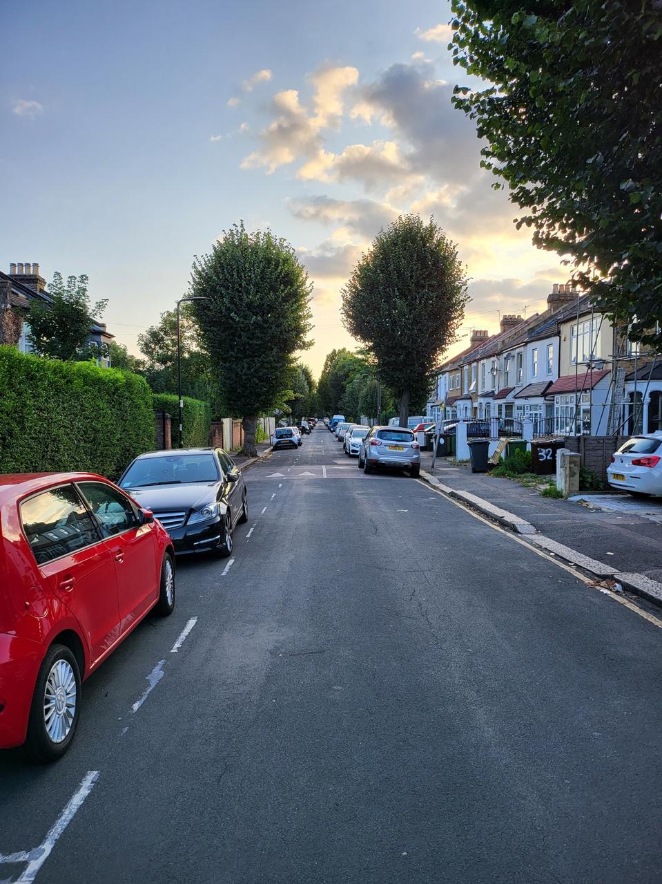 Broadly, images are well-exposed with good contrast and vibrant colors, but there’s an element of over-sharpening in a lot of the pictures. It’s deceptive because there isn’t much detail in most shots, which gets worse with the ultra-wide lens. The shot below of a street shows decent dynamic range and vibrant, but not natural, colors. This was early evening as the sun was setting, which is a potentially challenging shot, but I thought the Fold 3 captured that well enough. It’s a good picture.