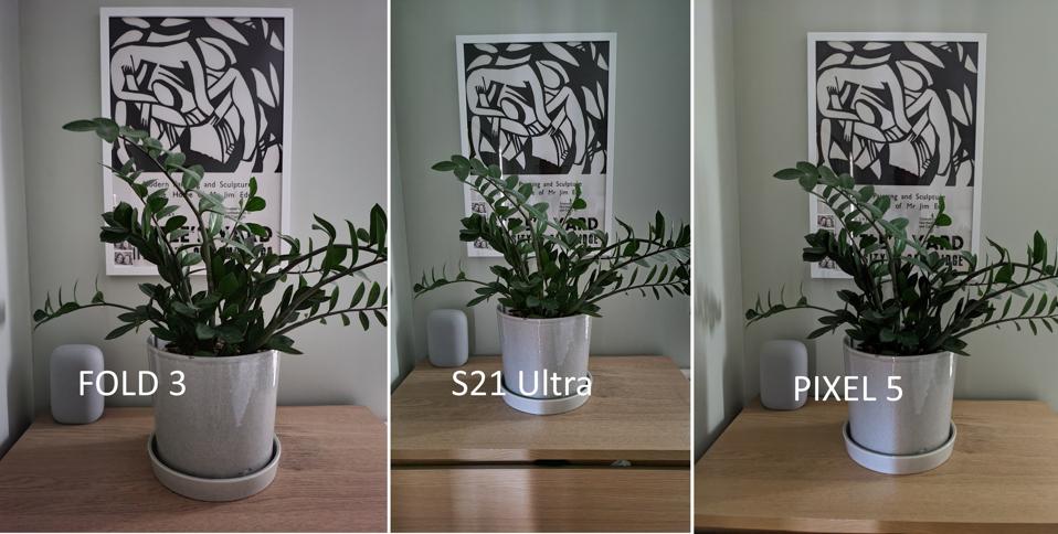 Indoors, the lack of detail is more obvious, which is also a problem on the S21 Ultra. But in the low light shot below, the Fold 3 handled itself well up against the S21 Ultra and Pixel 5. The S21 Ultra wins, but I'd say there's more detail and light in the Fold 3 than the Pixel 5, which is known for its night sight skills.