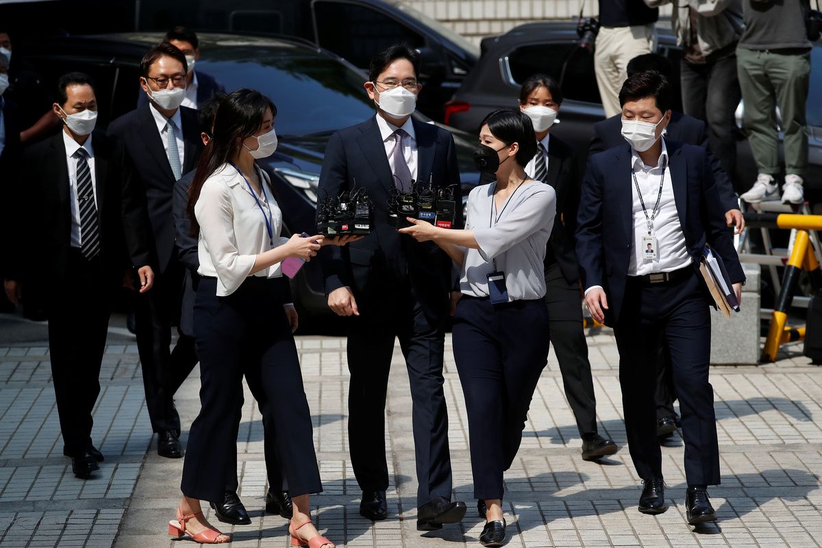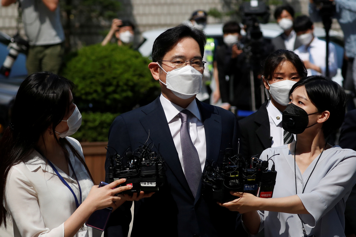 The 51-year-old Lee, wearing a mask and a dark suit, did not answer questions from reporters before entering the court.
