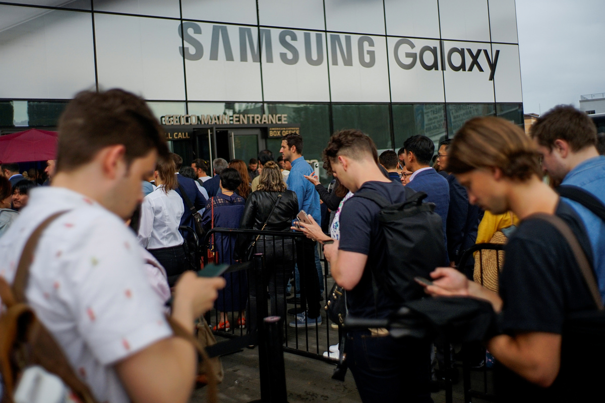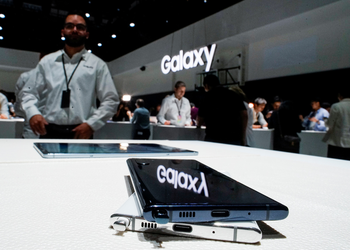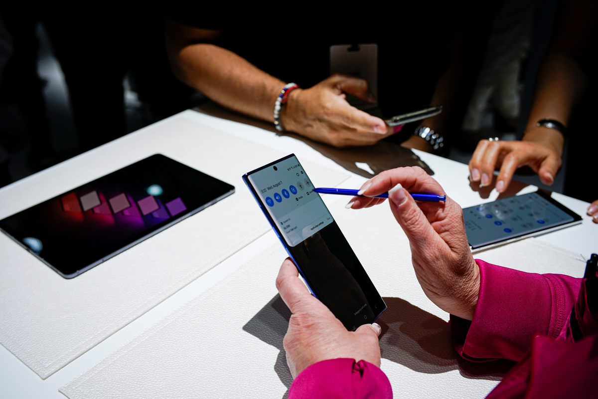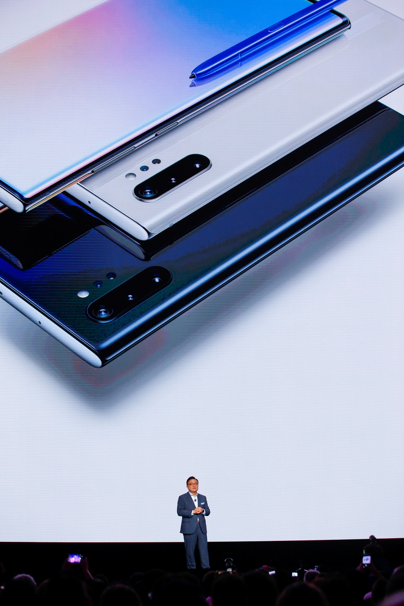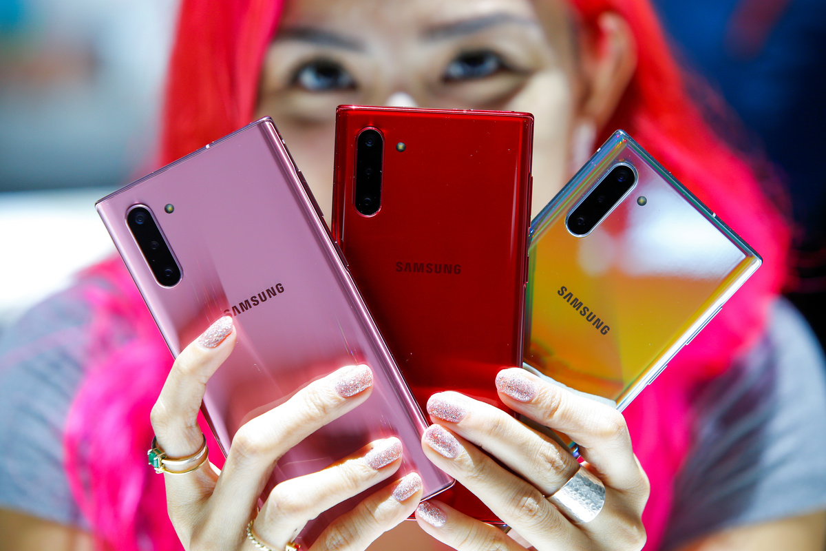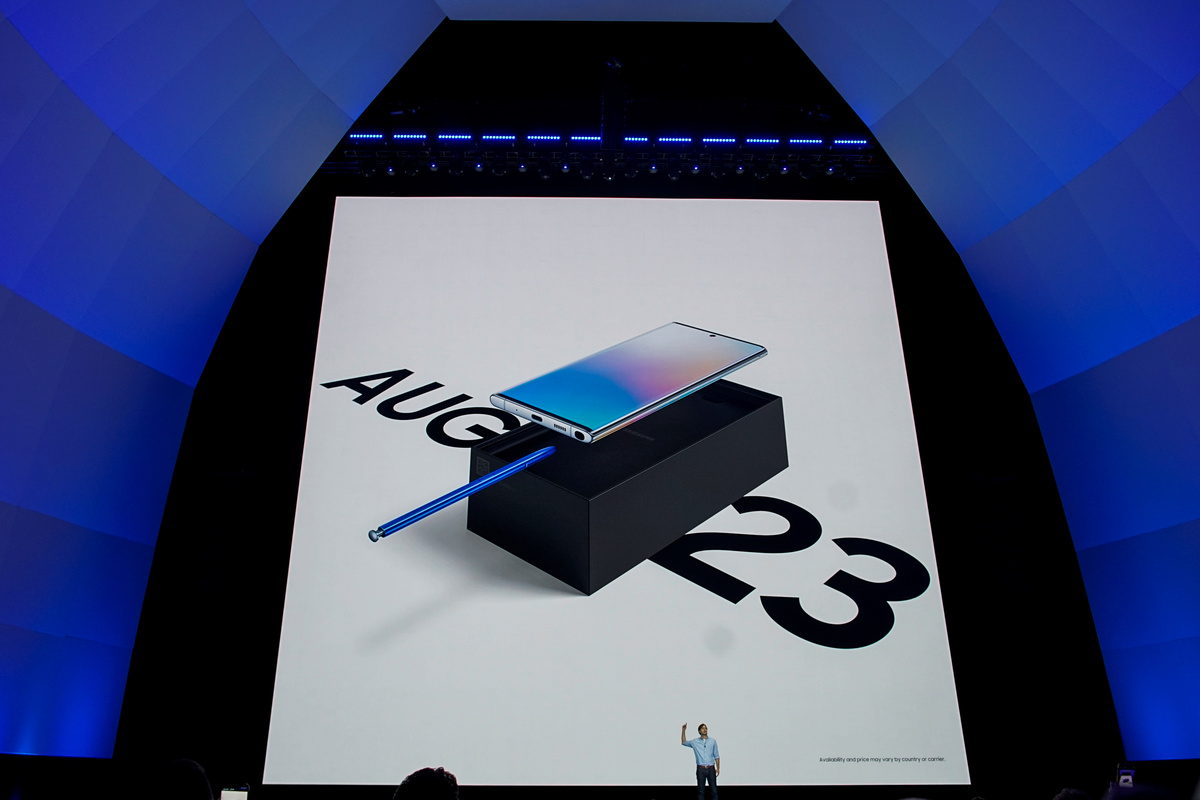 A woman holds different colored models of the Samsung Galaxy Note 10 while people test new devices during the launch event of the Galaxy Note 10 at the Barclays Center in Brooklyn, New York, U.S., August 7, 2019. REUTERS/Eduardo MunozA man takes a look of new devices during the launch event of the Samsung Galaxy Note 10 at the Barclays Center in Brooklyn, New York, U.S., August 7, 2019. REUTERS/Eduardo MunozClose up of the Samsung Galaxy Note 10 phone during the launch event of the Galaxy Note 10 at the Barclays Center in Brooklyn, New York, U.S., August 7, 2019. REUTERS/Eduardo MunozClose up of the Samsung Galaxy Note 10 during the launch event of the Galaxy Note 10 at the Barclays Center in Brooklyn, New York, U.S., August 7, 2019. REUTERS/Eduardo MunozClose up of the Galaxy Note 10 during the launch event of the Samsung Galaxy Note 10 at the Barclays Center in Brooklyn, New York, U.S., August 7, 2019. REUTERS/Eduardo MunozSamsung Electronics President and CEO Dong Jin Koh speaks during the launch event of the Galaxy Note 10 at the Barclays Center in Brooklyn, New York, U.S., August 7, 2019. REUTERS/Eduardo MunozPeople test new devices during the launch event of the Samsung Galaxy Note 10 at the Barclays Center in Brooklyn, New York, U.S., August 7, 2019. REUTERS/Eduardo MunozDrew Blackard, senior director of product marketing & portfolio strategy for Samsung Electronics Co., speaks during the launch event of the Galaxy Note 10 at the Barclays Center in Brooklyn, New York, U.S., August 7, 2019. REUTERS/Eduardo MunozPeople test new devices during the launch event of the Samsung Galaxy Note 10 at the Barclays Center in Brooklyn, New York, U.S., August 7, 2019. REUTERS/Eduardo MunozPeople test new devices during the launch event of the Samsung Galaxy Note 10 at the Barclays Center in Brooklyn, New York, U.S., August 7, 2019. REUTERS/Eduardo MunozSamsung Electronics President and CEO Dong Jin Koh speaks during the launch event of the Galaxy Note 10 at the Barclays Center in Brooklyn, New York, U.S., August 7, 2019. REUTERS/Eduardo MunozSamsung Electronics President and CEO Dong Jin Koh speaks during the launch event of the Galaxy Note 10 at the Barclays Center in Brooklyn, New York, U.S., August 7, 2019. REUTERS/Eduardo MunozSamsung Electronics President and CEO Dong Jin Koh (L) shakes hands with Satya Nadella, chief executive officer of Microsoft Corp., during the launch event of the Galaxy Note 10 at the Barclays Center in Brooklyn, New York, U.S., August 7, 2019. REUTERS/Eduardo MunozSamsung Electronics President and CEO Dong Jin Koh speaks during the launch event of the Galaxy Note 10 at the Barclays Center in Brooklyn, New York, U.S., August 7, 2019. REUTERS/Eduardo MunozSamsung Electronics President and CEO Dong Jin Koh speaks during the launch event of the Galaxy Note 10 at the Barclays Center in Brooklyn, New York, U.S., August 7, 2019. REUTERS/Eduardo MunozSamsung Electronics President and CEO Dong Jin Koh speaks during the launch event of the Galaxy Note 10 at the Barclays Center in Brooklyn, New York, U.S., August 7, 2019. REUTERS/Eduardo MunozPeople arrive at the launch event of the Galaxy Note 10 at the Barclays Center in Brooklyn, New York, U.S., August 7, 2019. REUTERS/Eduardo MunozPeople arrive at the launch event of the Galaxy Note 10 at the Barclays Center in Brooklyn, New York, U.S., August 7, 2019. REUTERS/Eduardo Munoz