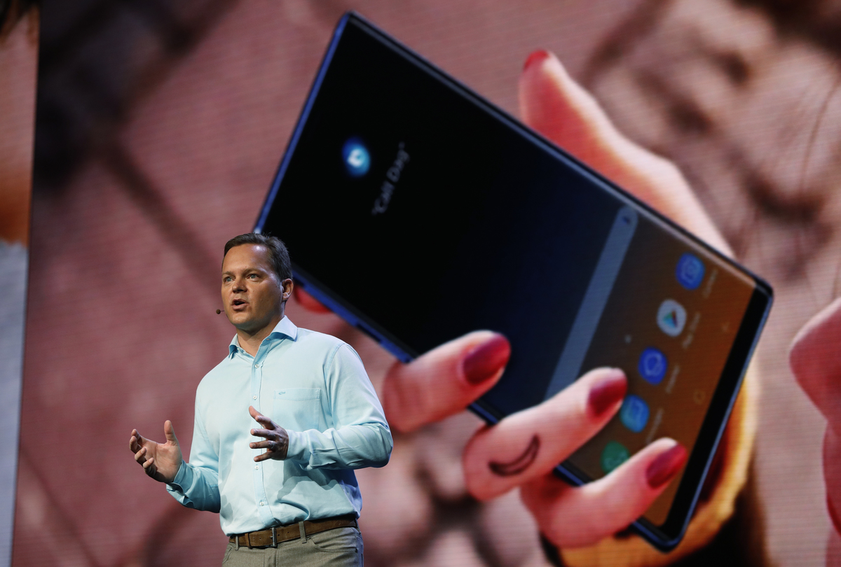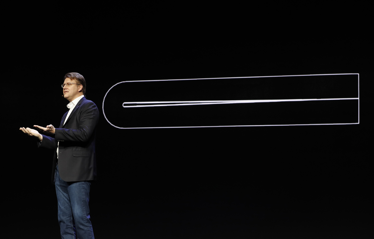 Justin Denison, a senior vice president of mobile product marketing, showed a prototype with a screen he said measured 7.3 inches (18.5 cm) diagonally.