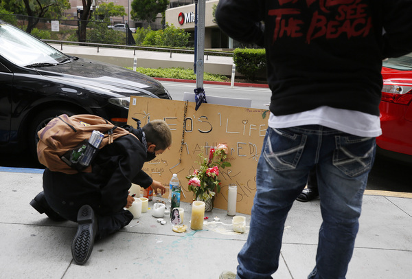 A screenshot of the photo at the center of the allegations under investigation _ an image that has been shared on social media by activists and organizations including United Against Police Terror San Diego _ show the makeshift memorial for Ibarra: candles and handmade signs, including one that reads, "Justice 4 Leo."