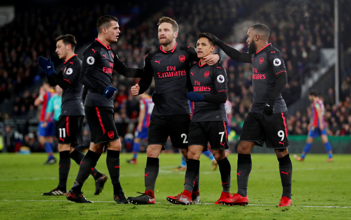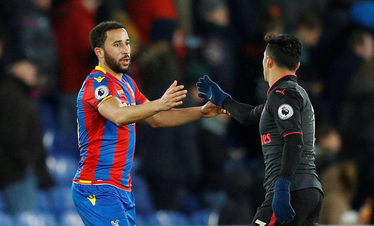 Soccer Football - Premier League - Crystal Palace vs Arsenal - Selhurst Park, London, Britain - December 28, 2017 Crystal Palace's Wilfried Zaha in action with Arsenal's Hector Bellerin REUTERS/Peter Nicholls Soccer Football - Premier League - Crystal Palace vs Arsenal - Selhurst Park, London, Britain - December 28, 2017 Crystal Palace's James Tomkins scores their second goal REUTERS/Peter Nicholls Soccer Football - Premier League - Crystal Palace vs Arsenal - Selhurst Park, London, Britain - December 28, 2017 Arsenal's Jack Wilshere in action with Crystal Palace's Scott Dann Action Images via Reuters/Matthew Childs Soccer Football - Premier League - Crystal Palace vs Arsenal - Selhurst Park, London, Britain - December 28, 2017 Crystal Palace's Andros Townsend celebrates scoring their first goal with Jeffrey Schlupp and Wilfried Zaha REUTERS/Peter Nicholls Soccer Football - Premier League - Crystal Palace vs Arsenal - Selhurst Park, London, Britain - December 28, 2017 Crystal Palace's Scott Dann applauds fans after the match REUTERS/Peter Nicholls Soccer Football - Premier League - Crystal Palace vs Arsenal - Selhurst Park, London, Britain - December 28, 2017 Crystal Palace's Andros Townsend shakes hands with Arsenal's Alexis Sanchez after the match REUTERS/Peter Nicholls Soccer Football - Premier League - Crystal Palace vs Arsenal - Selhurst Park, London, Britain - December 28, 2017 Crystal Palace fans celebrate after Andros Townsend scores their first goal REUTERS/Peter Nicholls Soccer Football - Premier League - Crystal Palace vs Arsenal - Selhurst Park, London, Britain - December 28, 2017 Crystal Palace's Andros Townsend in action with Arsenal's Sead Kolasinac Action Images via Reuters/Matthew Childs Soccer Football - Premier League - Crystal Palace vs Arsenal - Selhurst Park, London, Britain - December 28, 2017 Arsenal's Petr Cech applauds fans after the match Action Images via Reuters/Matthew Childs Soccer Football - Premier League - Crystal Palace vs Arsenal - Selhurst Park, London, Britain - December 28, 2017 Arsenal's Hector Bellerin in action with Crystal Palace's Jeffrey Schlupp Action Images via Reuters/Matthew Childs Soccer Football - Premier League - Crystal Palace vs Arsenal - Selhurst Park, London, Britain - December 28, 2017 Arsenal's Alexandre Lacazette shakes hands with manager Arsene Wenger as he is substituted REUTERS/Peter Nicholls Soccer Football - Premier League - Crystal Palace vs Arsenal - Selhurst Park, London, Britain - December 28, 2017 Crystal Palace's James Tomkins scores their second goal REUTERS/Peter Nicholls Soccer Football - Premier League - Crystal Palace vs Arsenal - Selhurst Park, London, Britain - December 28, 2017 Arsenal's Shkodran Mustafi celebrates scoring their first goal REUTERS/Peter Nicholls