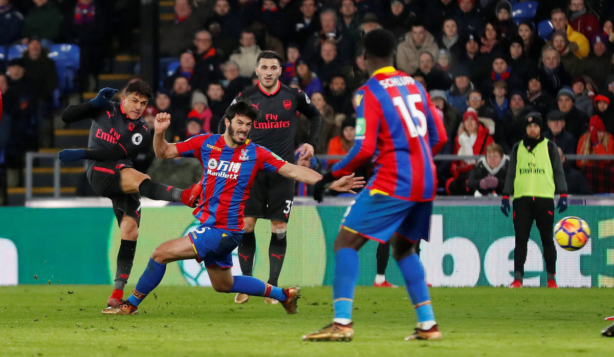 Soccer Football - Premier League - Crystal Palace vs Arsenal - Selhurst Park, London, Britain - December 28, 2017 Arsenal's Alexis Sanchez scores their second goal Action Images via Reuters/Matthew Childs