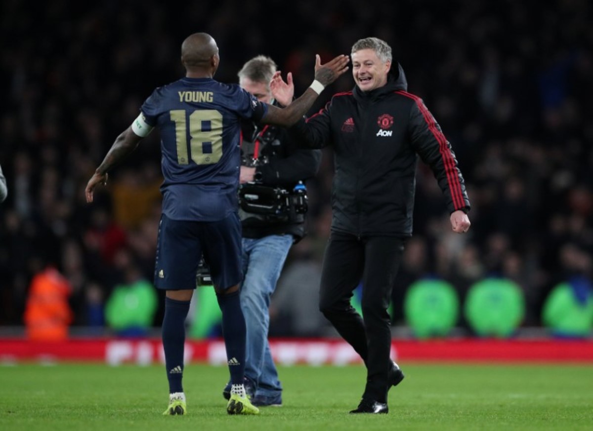Soccer Football - FA Cup Fourth Round - Arsenal v Manchester United - Emirates Stadium, London, Britain - January 25, 2019 Manchester United interim manager Ole Gunnar Solskjaer celebrates with Ashley Young after the match REUTERS/Hannah McKay