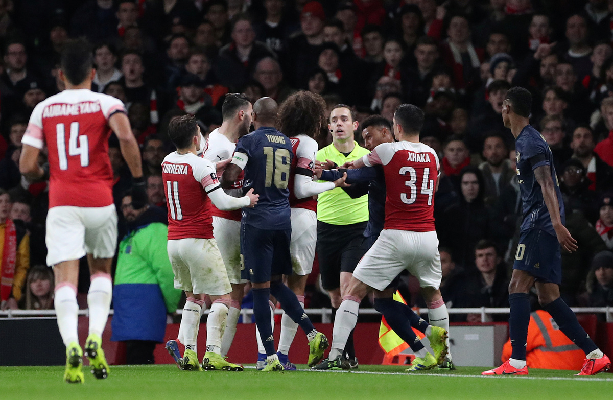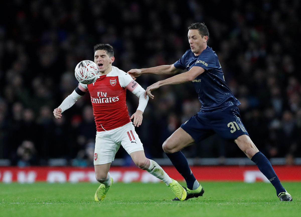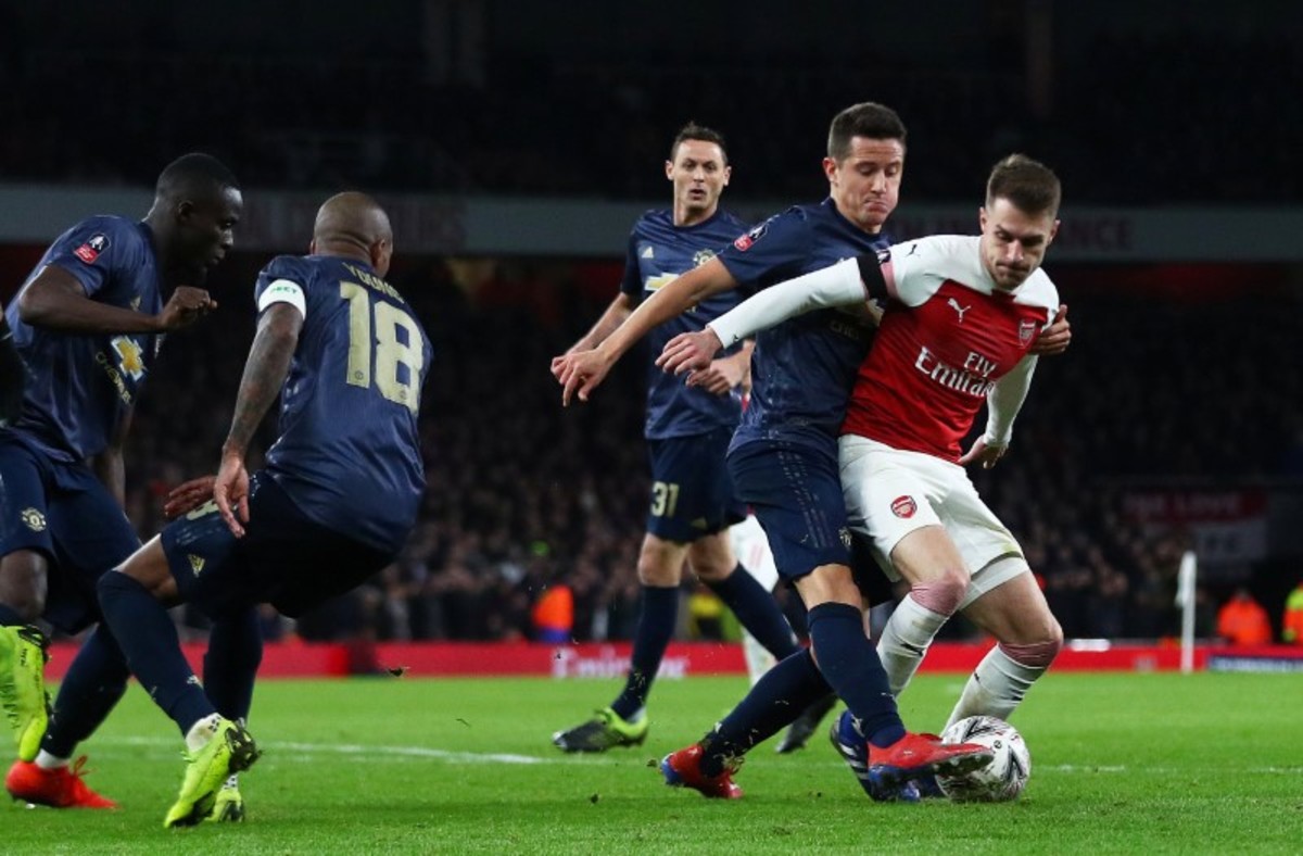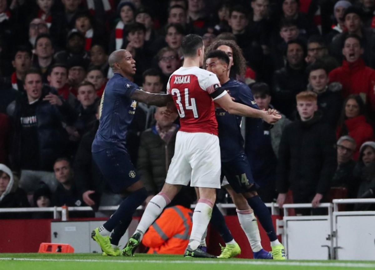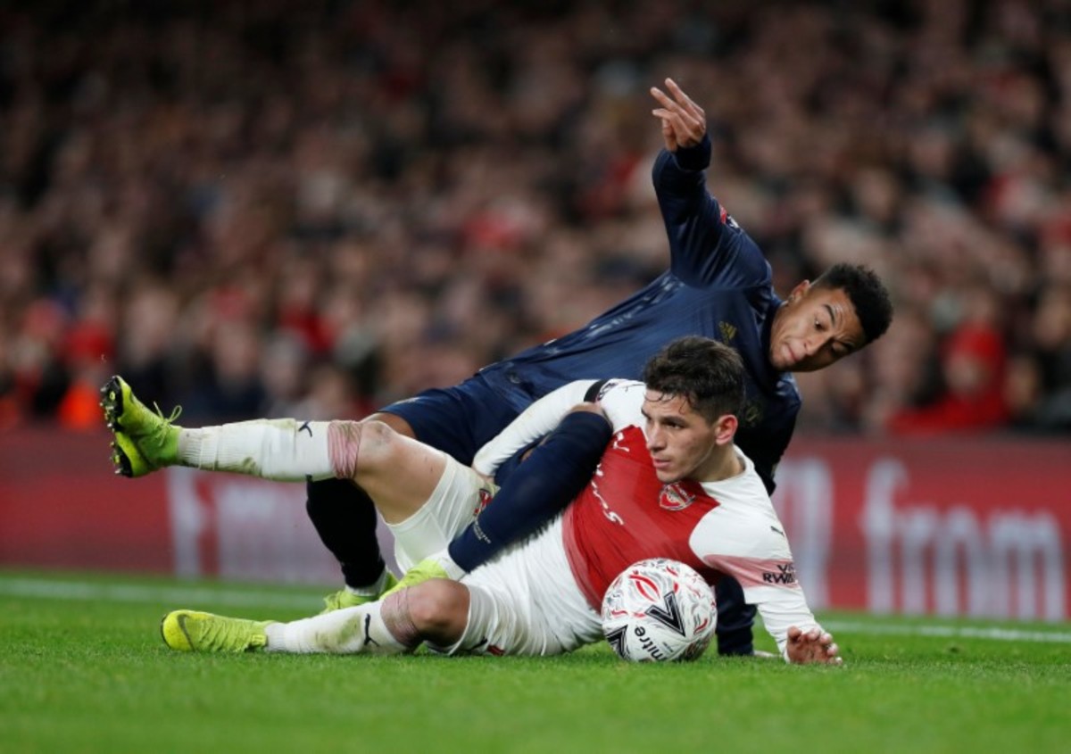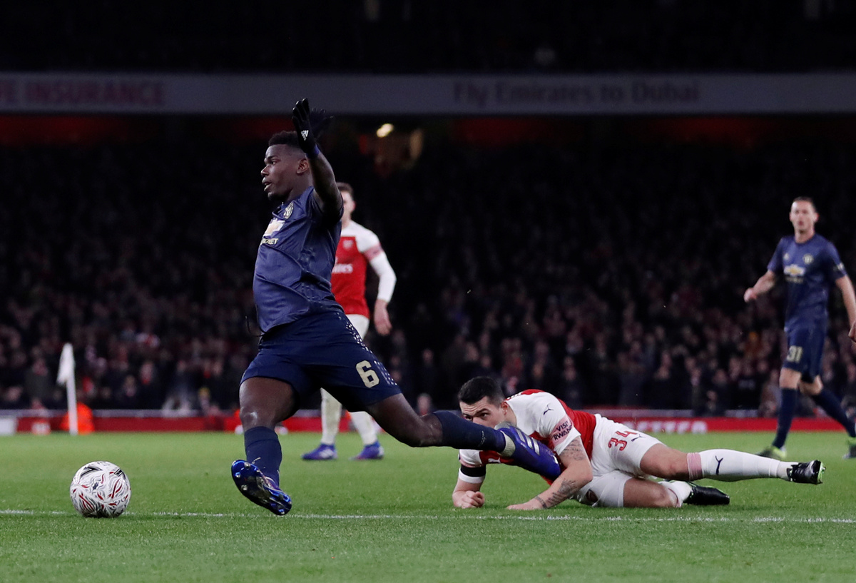 Soccer Football - FA Cup Fourth Round - Arsenal v Manchester United - Emirates Stadium, London, Britain - January 25, 2019 Arsenal's Matteo Guendouzi and Manchester United's Jesse Lingard clash REUTERS/Hannah McKaySoccer Football - FA Cup Fourth Round - Arsenal v Manchester United - Emirates Stadium, London, Britain - January 25, 2019 Manchester United's Anthony Martial celebrates scoring their third goal with Paul Pogba and Luke Shaw Action Images via Reuters/Matthew ChildsSoccer Football - FA Cup Fourth Round - Arsenal v Manchester United - Emirates Stadium, London, Britain - January 25, 2019 Manchester United's Anthony Martial celebrates scoring their third goal with Jesse Lingard Action Images via Reuters/Matthew ChildsSoccer Football - FA Cup Fourth Round - Arsenal v Manchester United - Emirates Stadium, London, Britain - January 25, 2019 Arsenal's Alexandre Lacazette and referee Craig Pawson Action Images via Reuters/Matthew ChildsSoccer Football - FA Cup Fourth Round - Arsenal v Manchester United - Emirates Stadium, London, Britain - January 25, 2019 Manchester United's Marcus Rashford shoots at goal Action Images via Reuters/Matthew ChildsSoccer Football - FA Cup Fourth Round - Arsenal v Manchester United - Emirates Stadium, London, Britain - January 25, 2019 Manchester United's Paul Pogba in action with Arsenal's Granit Xhaka Action Images via Reuters/Matthew ChildsSoccer Football - FA Cup Fourth Round - Arsenal v Manchester United - Emirates Stadium, London, Britain - January 25, 2019 Arsenal manager Unai Emery REUTERS/Hannah McKaySoccer Football - FA Cup Fourth Round - Arsenal v Manchester United - Emirates Stadium, London, Britain - January 25, 2019 Arsenal's Lucas Torreira in action with Manchester United's Jesse Lingard Action Images via Reuters/Matthew ChildsSoccer Football - FA Cup Fourth Round - Arsenal v Manchester United - Emirates Stadium, London, Britain - January 25, 2019 Arsenal's Alexandre Lacazette shoots at goal REUTERS/Hannah McKaySoccer Football - FA Cup Fourth Round - Arsenal v Manchester United - Emirates Stadium, London, Britain - January 25, 2019 Manchester United's Ander Herrera in action with Arsenal's Aaron Ramsey REUTERS/Hannah McKaySoccer Football - FA Cup Fourth Round - Arsenal v Manchester United - Emirates Stadium, London, Britain - January 25, 2019 Arsenal's Lucas Torreira in action with Manchester United's Nemanja Matic Action Images via Reuters/Matthew Childs