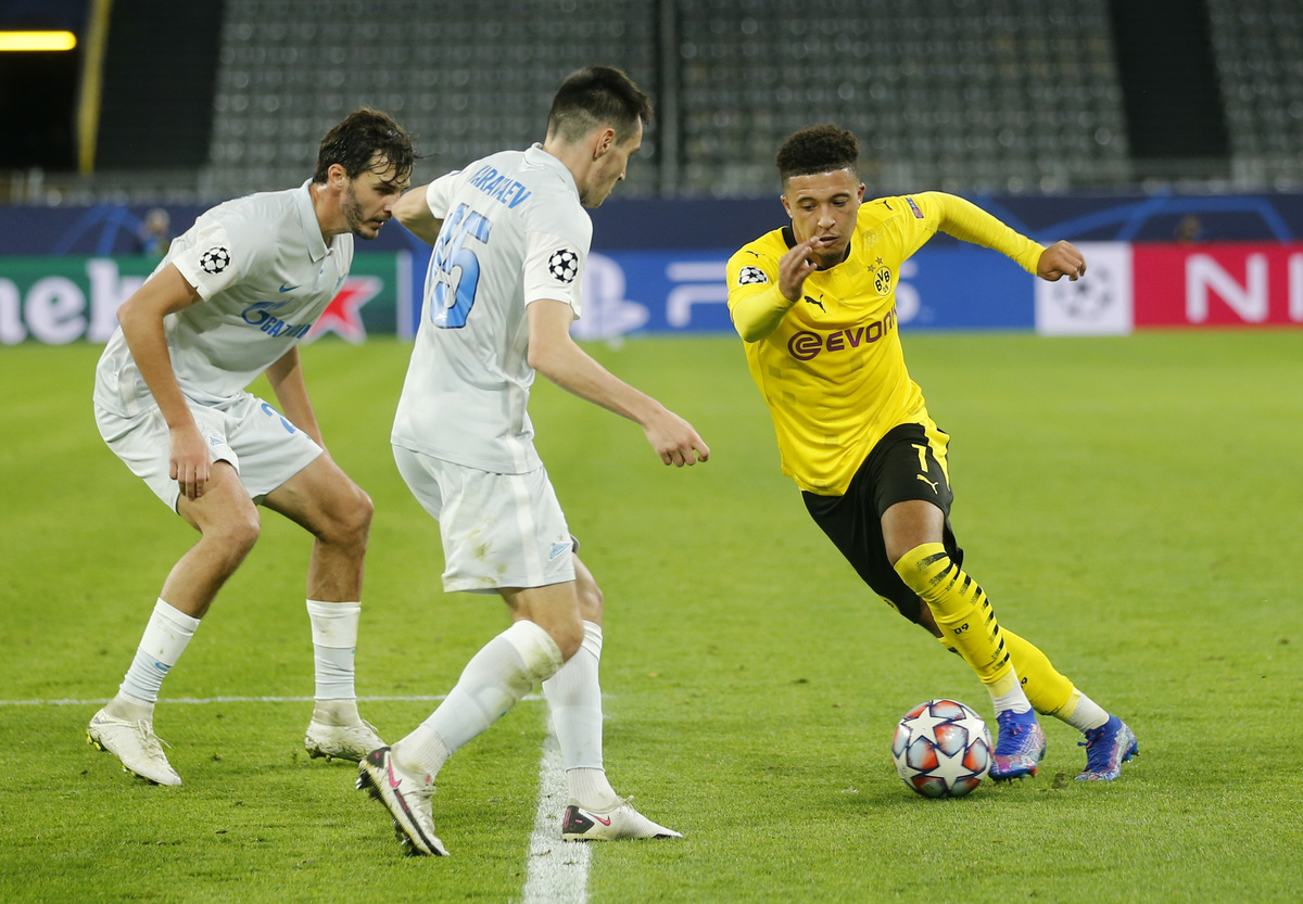 Borussia Dortmund needed a 78th-minute penalty from Jadon Sancho and a stoppage-time goal from Erling Haaland to beat visitors Zenit St Petersburg 2-0 in their Champions League Group F match on Wednesday.