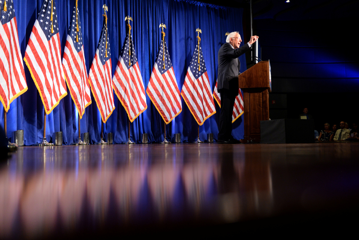"You can't change a corrupt system by taking its money," Sanders said in his speech.