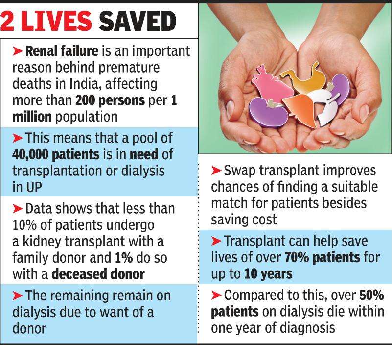 LUCKNOW: In a landmark development that may cut the wait list for patients in need of kidney transplant, doctors at Sanjay Gandhi Post Graduate Institute of Medical Sciences conducted the state’s first swap renal transplant on Tuesday after two families agreed to the respective spouses donating a kidney to the other patient in exchange.