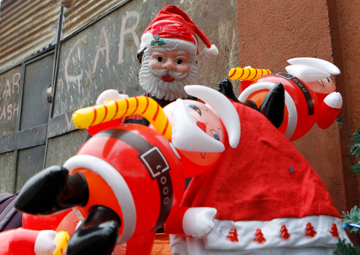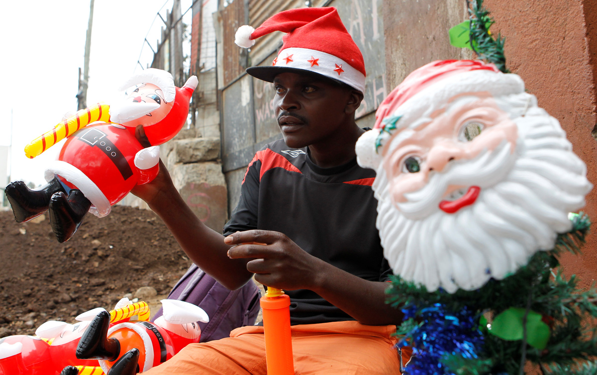 Reuters photographers took the streets of cities across the continent to capture traders and hawkers selling everything from Santa hats and fake beards to colorful tinsel and shiny tree baubles.In Nairobi, Joseph Muli said trees and inflatable Santas were his best-selling items.