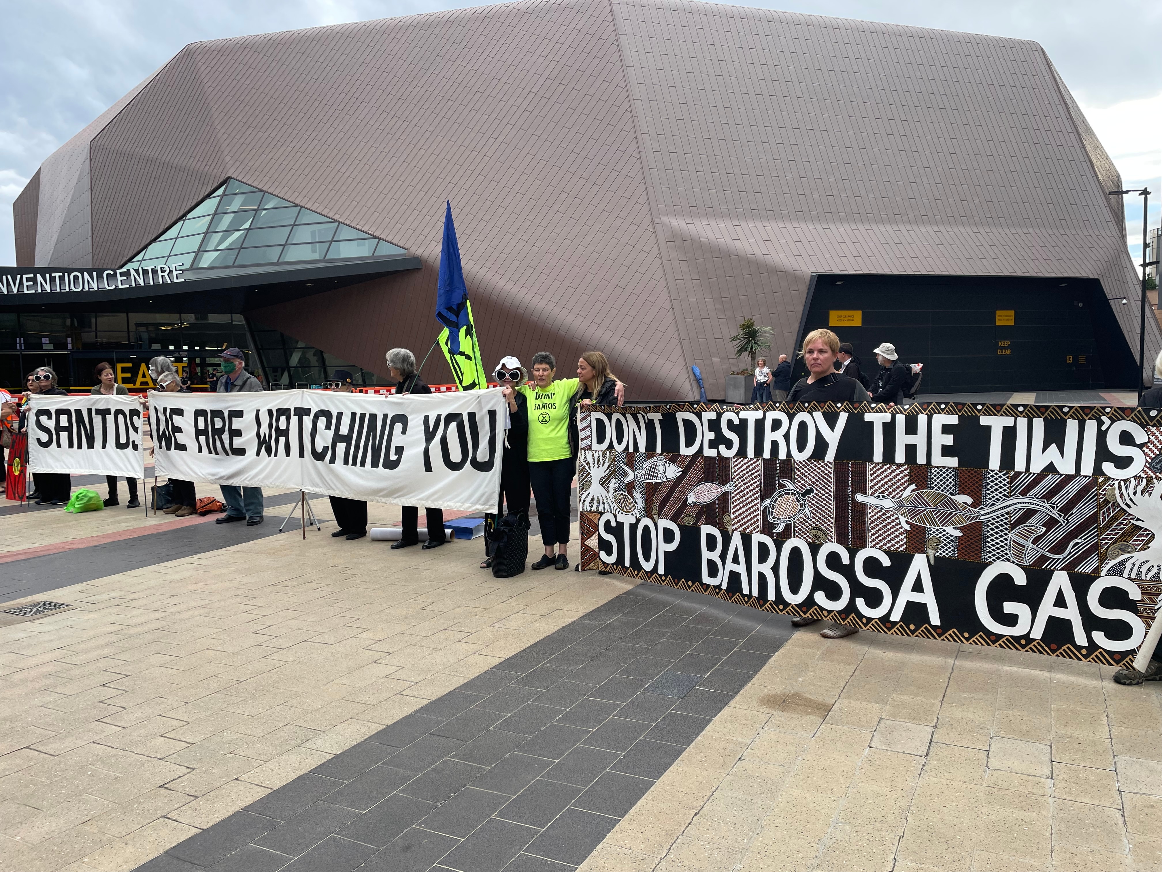 Meanwhile, a group of First Nations people — including Gomeroi people from New South Wales and Tiwi Islanders — travelled to Adelaide for the Santos AGM to voice concerns about some of the company's developments.