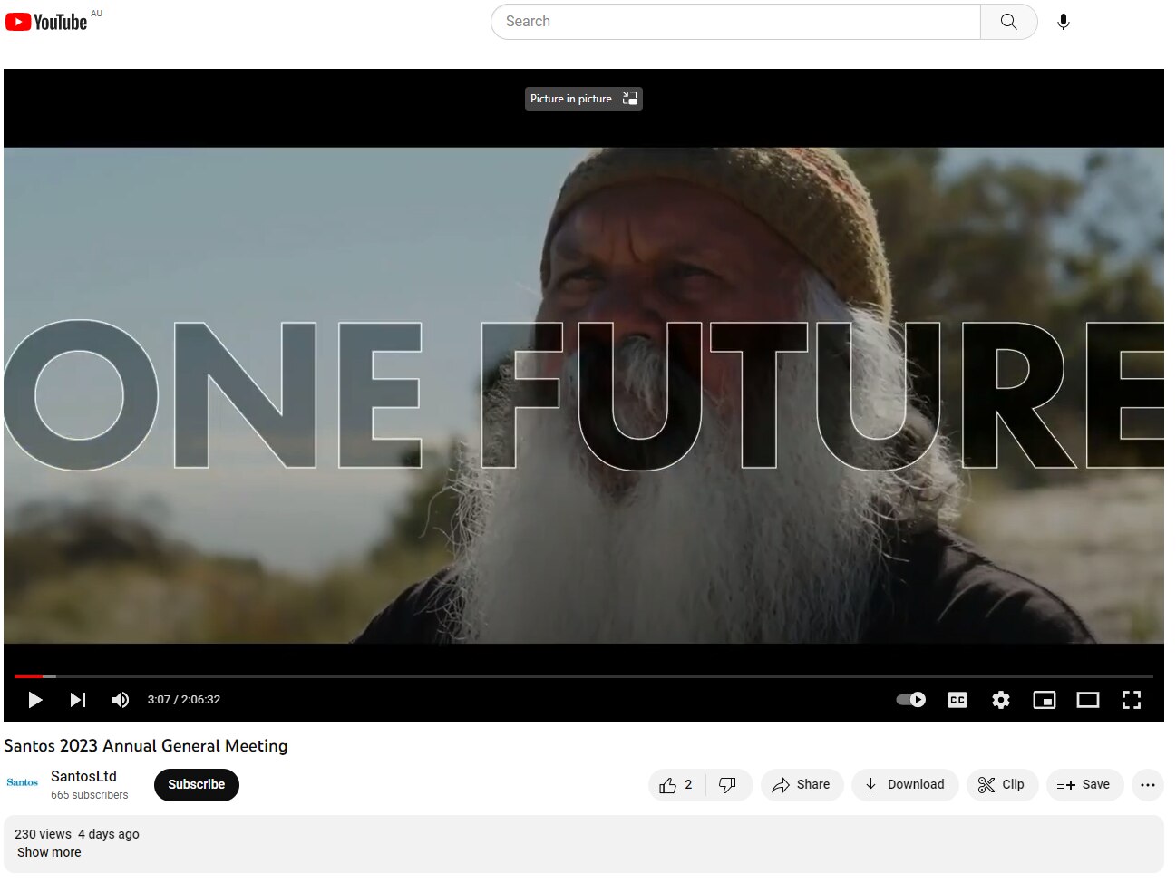 "I acknowledge your views regarding fossil fuels and regret that you were upset by the interactions of Santos with Gomeroi and Tiwi Island people at the AGM.