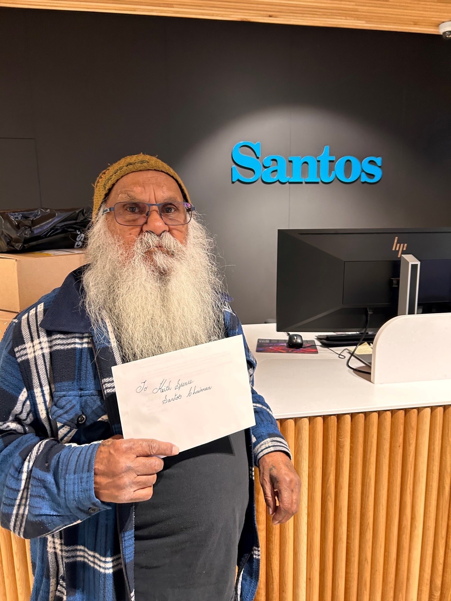 Kaurna and Ngarrindjeri elder Major "Moogy" Sumner has written to Santos chairman Keith Spence saying he did not give consent for his image to be used in a promotional video played at the company's heated Annual General Meeting in Adelaide on April 6.