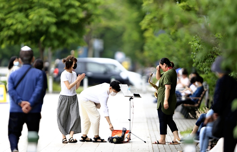 Local musician Hikoichi Kudo, 61, said he has been spending more time practicing at home recently. "The fear of infection still exists, so it's hard to get the band together. I can't wait for the day we can all play together again," he said.