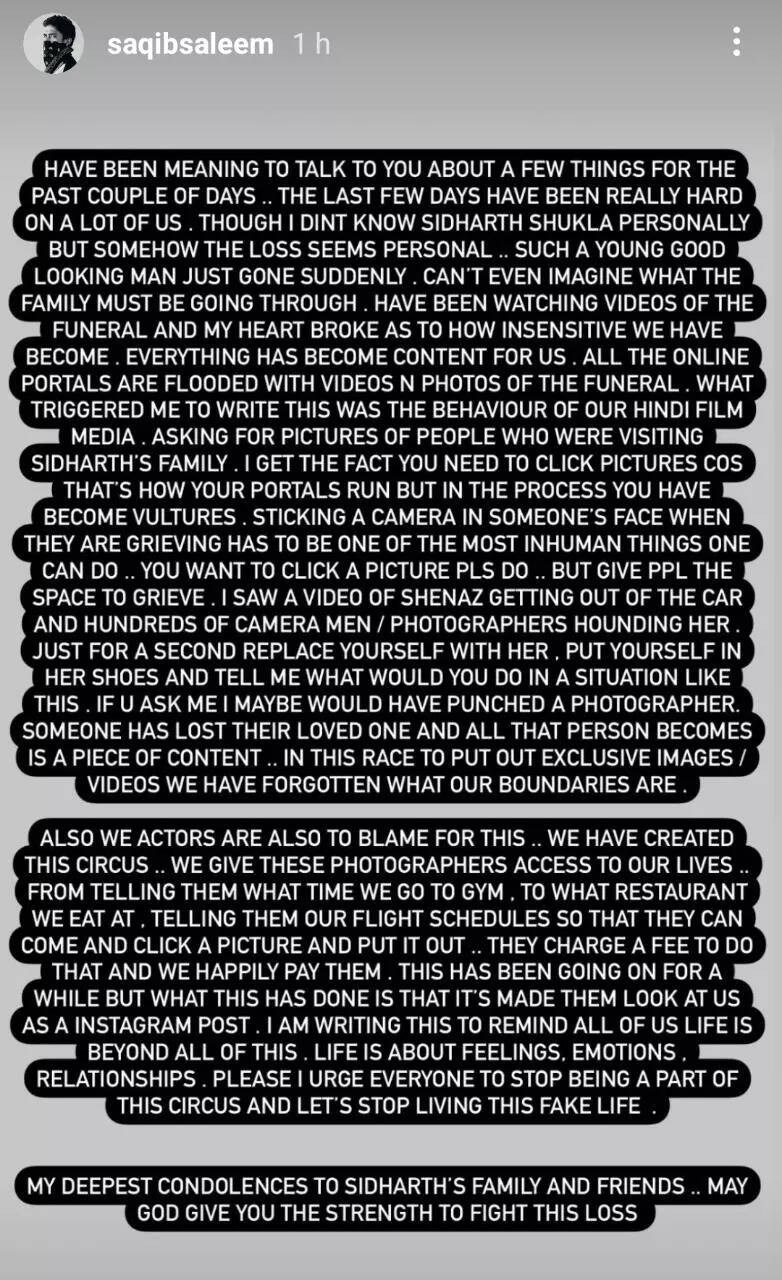 Saqib signed off by offering condolences to Sidharth Shukla’s grieving family.