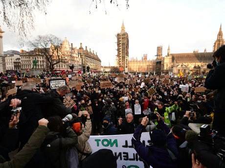 Crowds later marched to Trafalgar Square, before staging a protest outside the Metropolitan Police’s headquarters at New Scotland Yard.