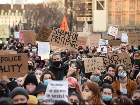 Arrests have been made after protesters marched through central London to campaign following the death of Sarah Everard.