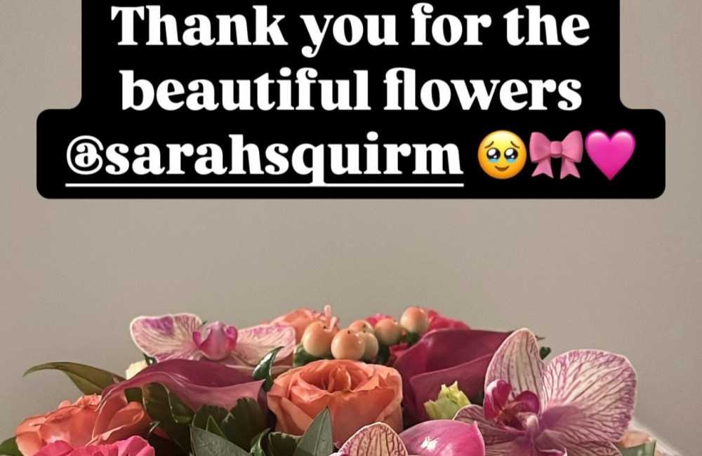 She captioned the image: "Thank you for the beautiful flowers @sarahsquirm."