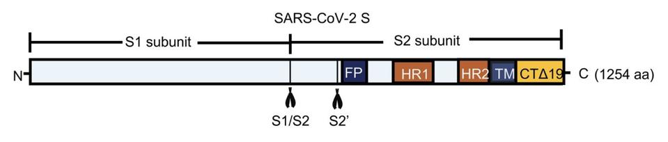 As expected, the researchers witnessed cell fusion between the spike protein-containing cells and the endothelial cells. This had already been demonstrated in prior studies. But Liu and colleagues noticed that cell fusion depends greatly on host proteases used to break down the spike protein, such as transmembrane serine protease 2 (TMPRSS2). SARS-CoV-2 spike undergoes cleavage at two sites: S1/S2 and S2’ (Figure 2). When the researchers generated spike protein mutants with alterations to these sites —rendering them resistant to cleavage— they witnessed only modest, if any, syncytia formation. The unmutated spike protein, in contrast, induced extensive cell fusion.