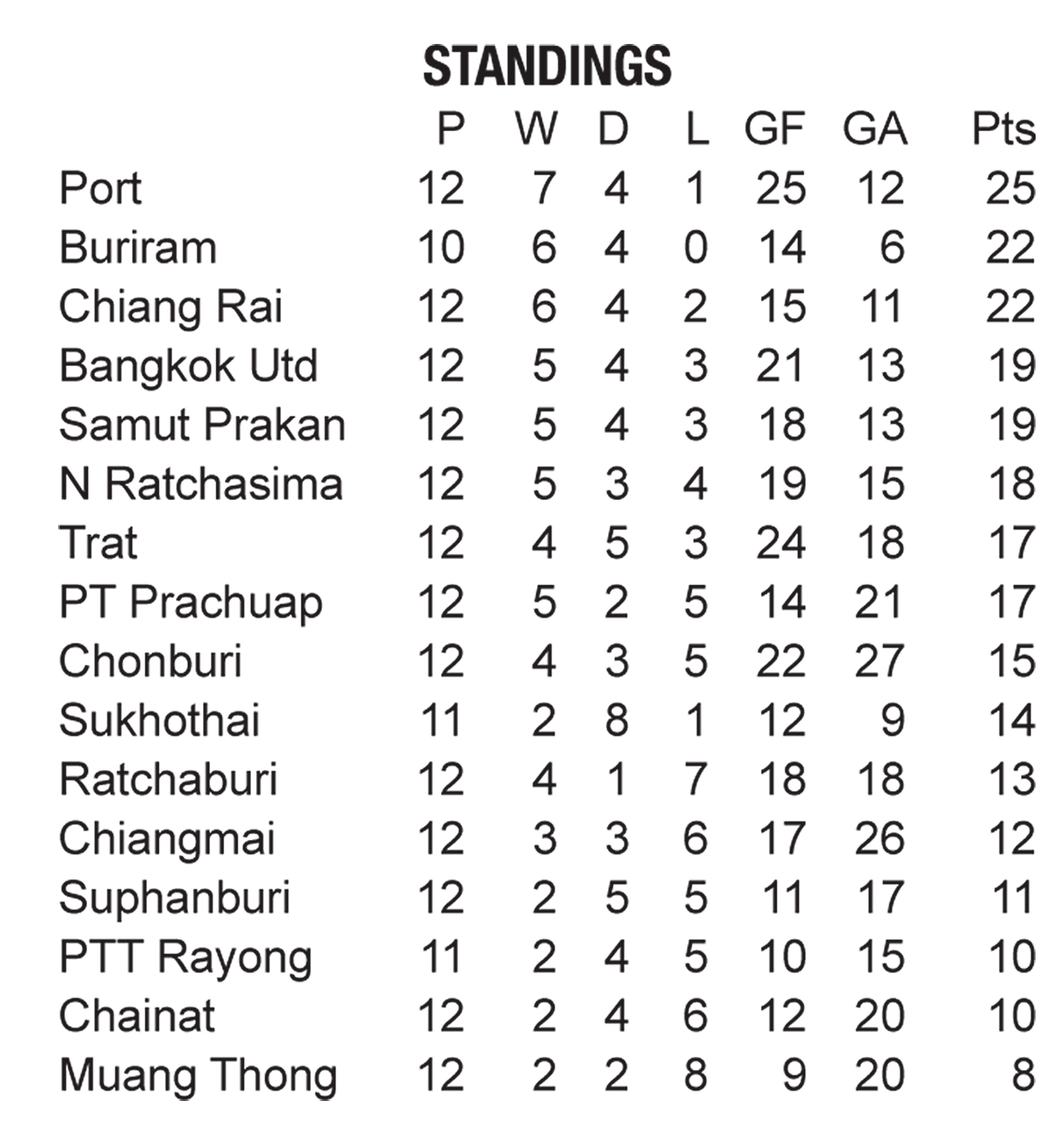 Bangkok United are fourth on 19 points while Samut Prakan, also on 19, are fifth.