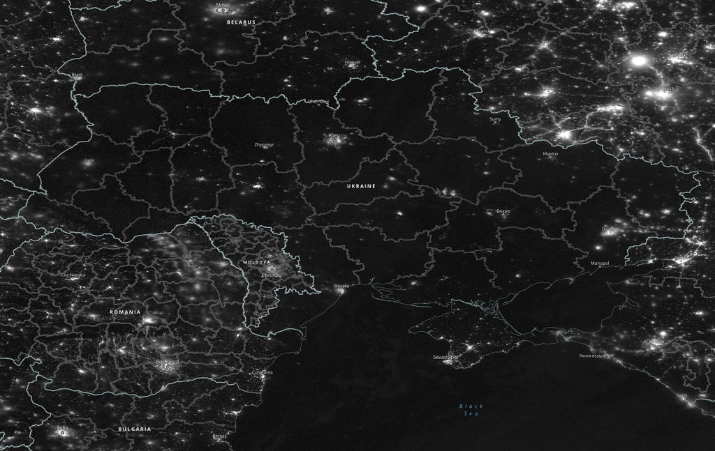 Satellite imagery captured by Nasa shows one of the impacts Russia’s invasion of Ukraine has had: the amount of light emitted at night has fallen.