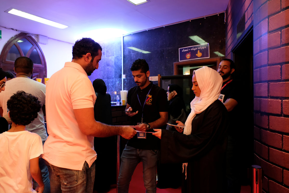 For now, the authorities are sponsoring temporary settings, like the state-run cultural hall in the Red Sea city of Jeddah equipped with a projector, a red carpet and a popcorn machine.