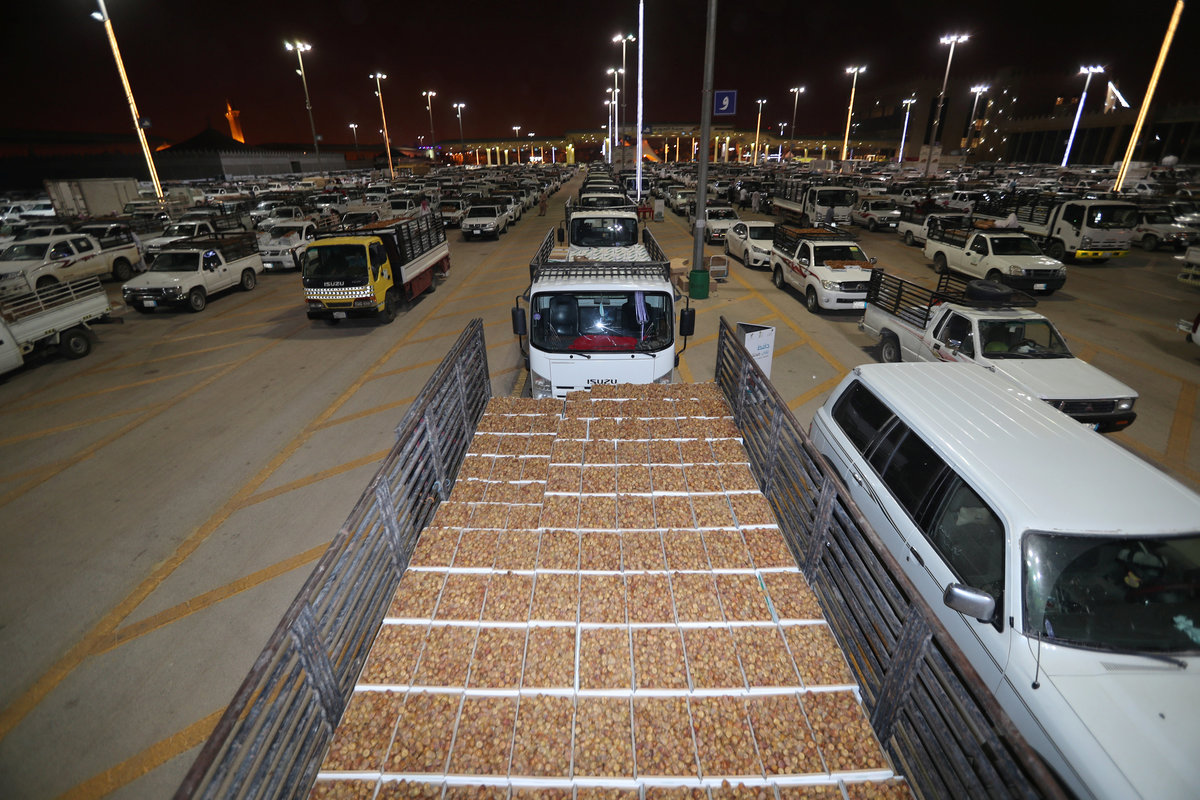 Trucks are seen lined up with dates early hours for an auction to begin during the world's largest dates festival, "Buraidah Dates Festival" at Buraidah in al-Qassim, Saudi Arabia August 29, 2018. REUTERS/Hamad I MohammedA Saudi man auctions his farm dates during the worldÕs largest dates festival, "Buraidah Dates Festival" at Buraidah in al-Qassim, Saudi Arabia August 29, 2018. REUTERS/Hamad I MohammedTrucks are seen lined up with dates early hours for auction to begin during the world's largest dates festival, "Buraidah Dates Festival" at Buraidah in al-Qassim, Saudi Arabia August 29, 2018. REUTERS/Hamad I MohammedA Saudi man auctions his farm dates during the world's largest dates festival, "Buraidah Dates Festival", at Buraidah in al-Qassim, Saudi Arabia August 29, 2018. REUTERS/Hamad I Mohammed