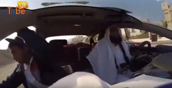 The footage, posted on YouTube by a comedy group in Saudi Arabia and viewed thousands of time, shows the driver dressed in white traditional dress and a fake beard.