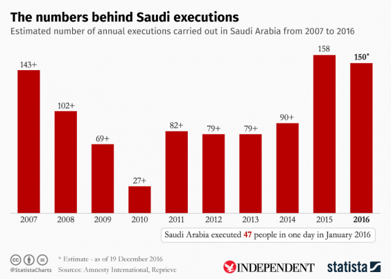 "In Saudi Arabia, where people are routinely sentenced to death after grossly unfair trials, we have seen a dramatic surge in the number of executions in the past two years which has shown no sign of abating in 2016,” she said.