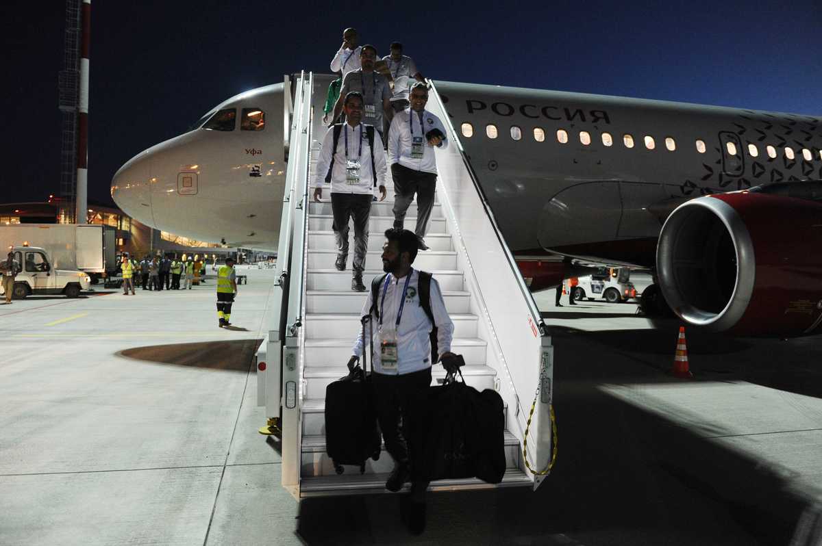 The Saudi federation released photographs of the players smiling and looking calm as they boarded a bus for the Mercure Hotel in central Rostov.