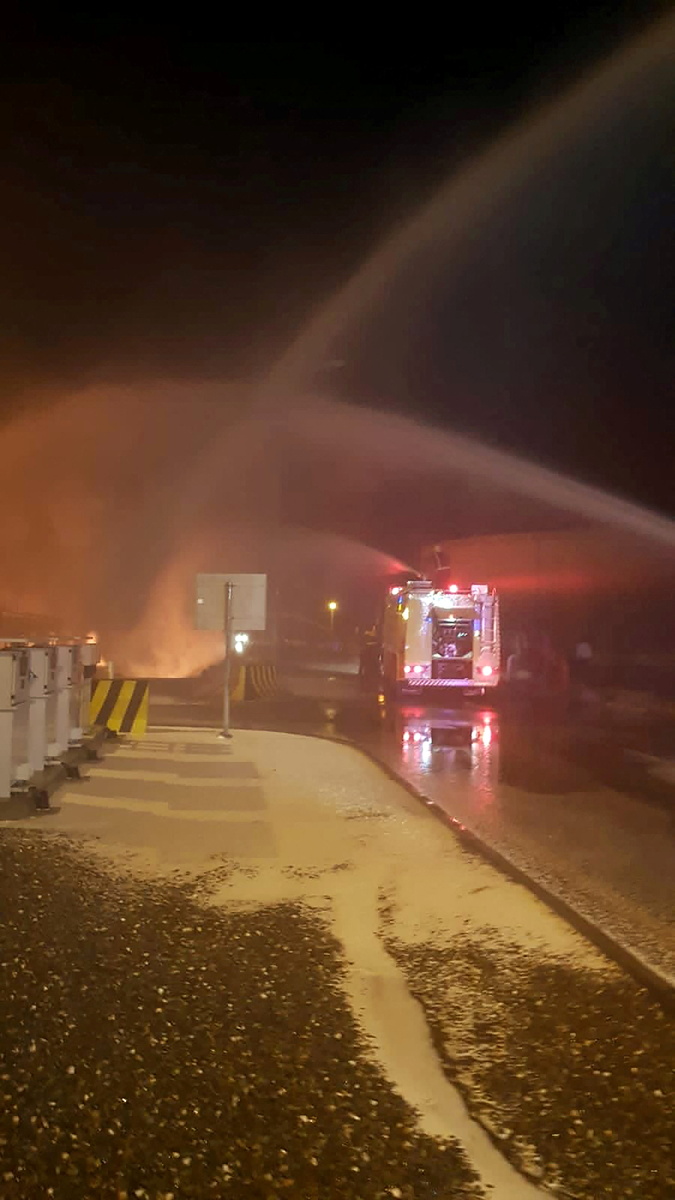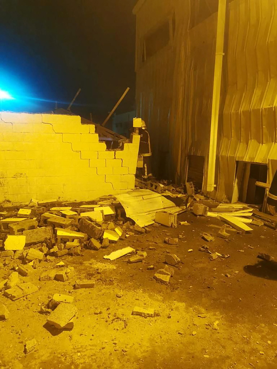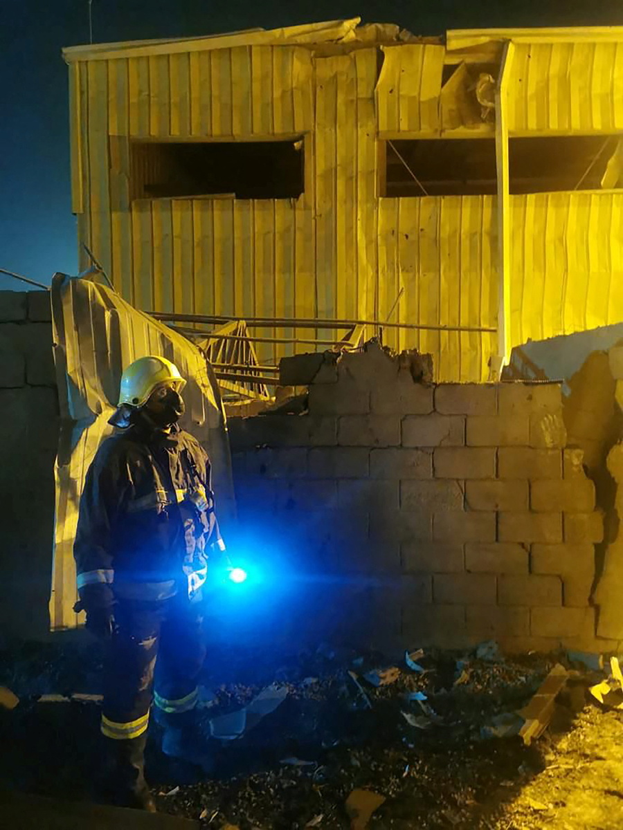 State media posted images and videos of projectile debris, damaged cars and structures, and firefighters dousing flames.